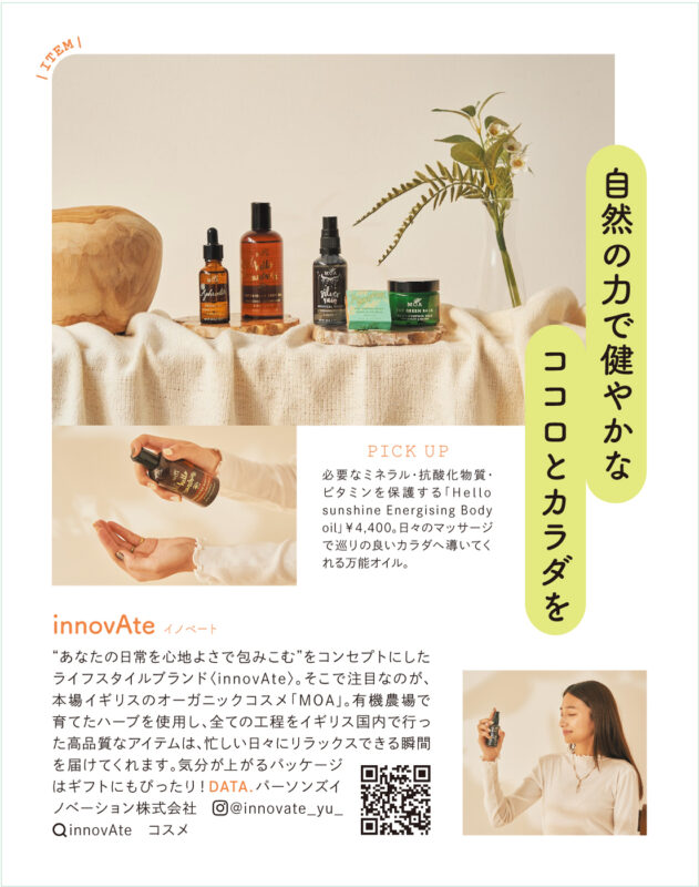 パーソンズイノベーション株式会社(本社:大阪市中央区 代表取締役 横山行雄)が運営するオンラインショップ『innovAte』がWebサイトをリニューアルオープンしました。「あなたの日常を心地よさで包みこむ」をコンセプトにMade in JapanのオリジナルラウンジウェアinnovAteと、イギリスのオーガニックコスメMOAを展開します。